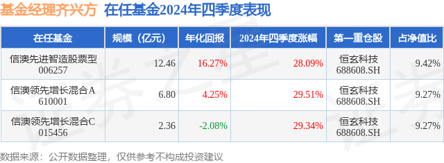 证券之星消息,日前信澳先进智造股票型基金公布四季报,2024年四季度最新规模12.46亿元,季度净值涨幅为28.09%。