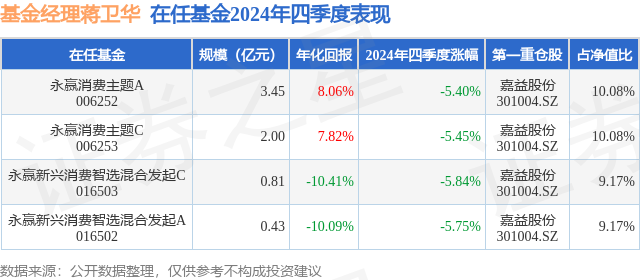 证券之星消息,日前永赢消费主题C基金公布四季报,2024年四季度最新规模2.0亿元,季度净值涨幅为-5.45%。