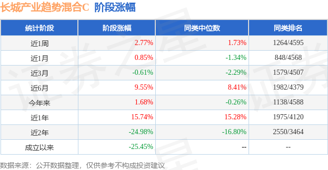 从业绩表现来看,长城产业趋势混合C基金过去一年净值涨幅为15.74%,在同类基金中排名1975/4120,同类基金过去一年净值涨幅中位数为15.28%。而基金过去一年的最大回撤为-17.84%,成立以来的最大回撤为-42.95%。