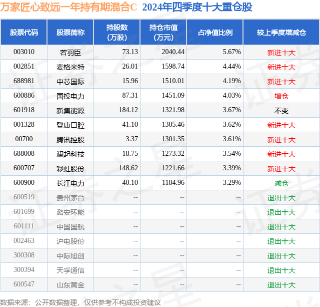 证券之星消息,日前万家匠心致远一年持有期混合C基金公布四季报,2024年四季度最新规模0.36亿元,季度净值涨幅为-9.8%。