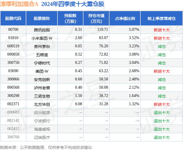 证券之星消息,日前淳厚利加混合A基金公布四季报,2024年四季度最新规模0.01亿元,季度净值涨幅为0.17%。
