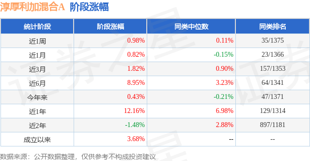 从业绩表现来看,淳厚利加混合A基金过去一年净值涨幅为12.16%,在同类基金中排名129/1314,同类基金过去一年净值涨幅中位数为6.98%。而基金过去一年的最大回撤为-10.83%,成立以来的最大回撤为-14.81%。