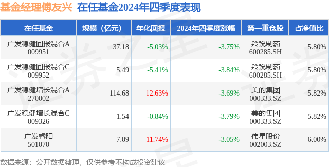 证券之星消息,日前广发睿阳基金公布四季报,2024年四季度最新规模7.09亿元,季度净值涨幅为-3.05%。