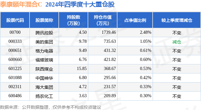 证券之星消息,日前泰康颐年混合C基金公布四季报,2024年四季度最新规模5.07亿元,季度净值涨幅为1.28%。