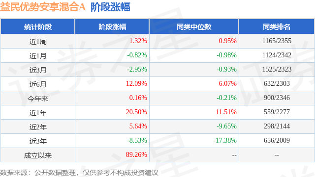 从业绩表现来看,益民优势安享混合A基金过去一年净值涨幅为20.5%,在同类基金中排名559/2277,同类基金过去一年净值涨幅中位数为11.51%。而基金过去一年的最大回撤为-13.99%,成立以来的最大回撤为-37.95%。