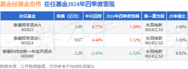 证券之星消息,日前泰康颐享混合A基金公布四季报,2024年四季度最新规模1.09亿元,季度净值涨幅为1.2%。