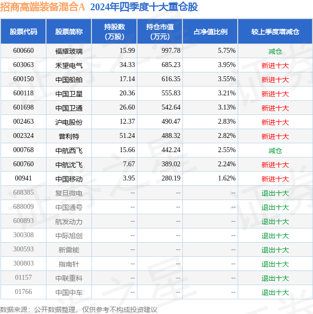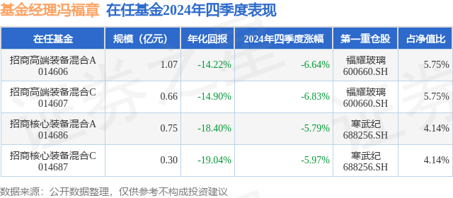 证券之星消息,日前招商高端装备混合A基金公布四季报,2024年四季度最新规模1.07亿元,季度净值涨幅为-6.64%。