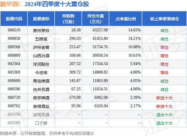 证券之星消息,日前鹏华酒C基金公布四季报,2024年四季度最新规模7.82亿元,季度净值涨幅为-10.39%。