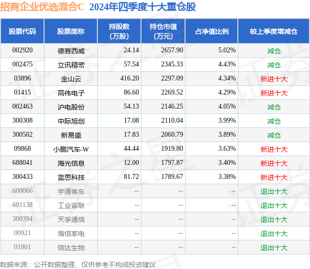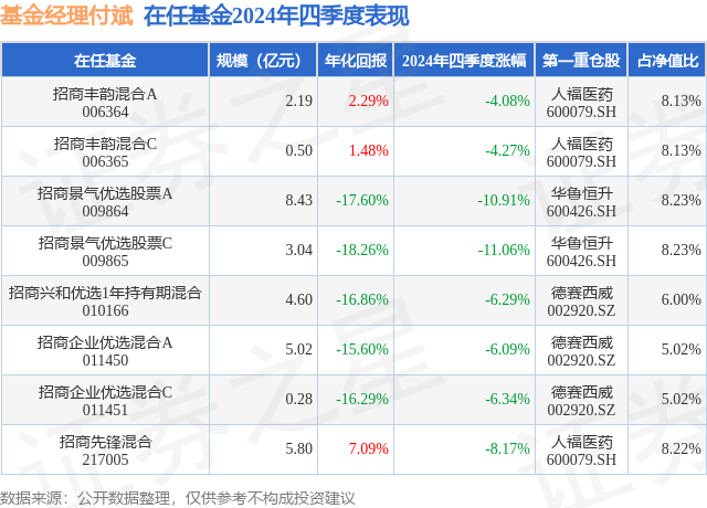 证券之星消息,日前招商企业优选混合C基金公布四季报,2024年四季度最新规模0.28亿元,季度净值涨幅为-6.34%。