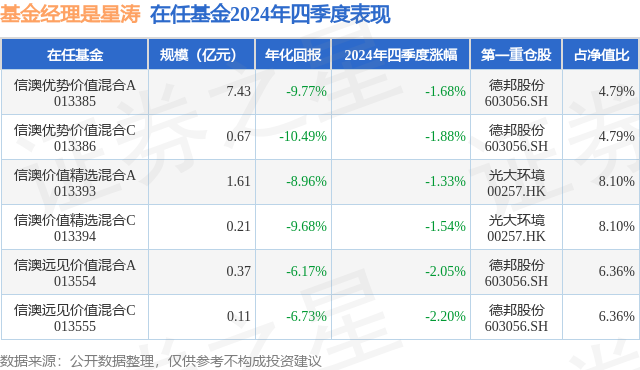 证券之星消息,日前信澳价值精选混合A基金公布四季报,2024年四季度最新规模1.61亿元,季度净值涨幅为-1.33%。
