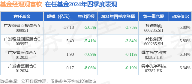 证券之星消息,日前广发睿盛混合A基金公布四季报,2024年四季度最新规模1.9亿元,季度净值涨幅为-0.11%。