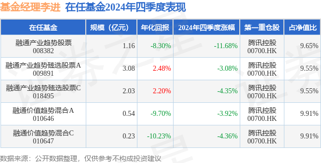 证券之星消息,日前融通价值趋势混合C基金公布四季报,2024年四季度最新规模0.23亿元,季度净值涨幅为-4.36%。