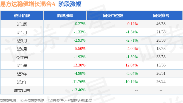 从业绩表现来看,易方达稳健增长混合A基金过去一年净值涨幅为13.3%,在同类基金中排名15/56,同类基金过去一年净值涨幅中位数为12.04%。而基金过去一年的最大回撤为-9.74%,成立以来的最大回撤为-25.19%。