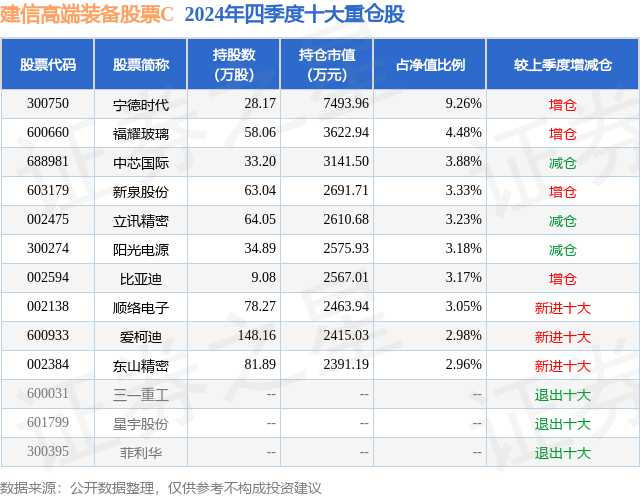 证券之星消息,日前建信高端装备股票C基金公布四季报,2024年四季度最新规模1.86亿元,季度净值涨幅为-1.05%。