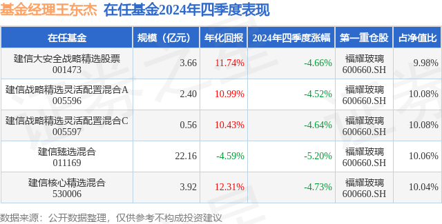 证券之星消息,日前建信臻选混合基金公布四季报,2024年四季度最新规模22.16亿元,季度净值涨幅为-5.2%。