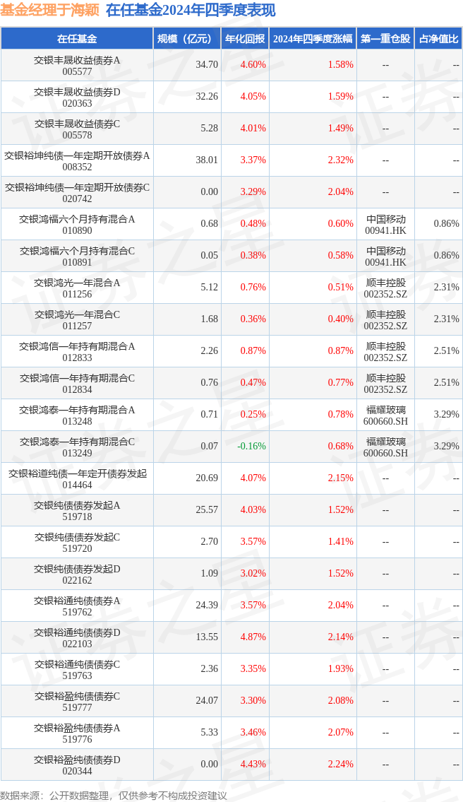 证券之星消息,日前交银鸿光一年混合C基金公布四季报,2024年四季度最新规模1.68亿元,季度净值涨幅为0.4%。