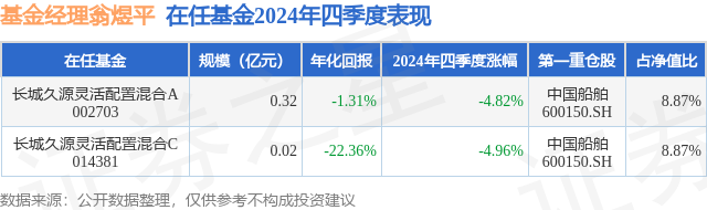 证券之星消息,日前长城久源灵活配置混合C基金公布四季报,2024年四季度最新规模0.02亿元,季度净值涨幅为-4.96%。