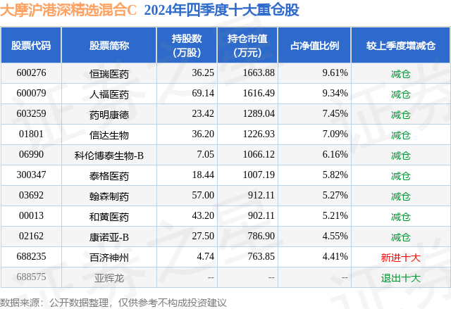 对本季度基金运作,基金经理的观点如下:2024年四季度,权益市场经过三季度的大幅上扬后,整体表现平稳。国内政策超预期,经济及消费预期提升,市场进入政策落地效果的跟踪阶段;AI等产业趋势延续,应用端不断突破。在此背景下,四季度权益市场细分表现差异明显:AI、机器人等产业趋势推动电子、计算机、通信、传媒等显著上涨;周期类有色、煤炭、房地产、石油石化及化工等回落;消费类逐步进入验证复苏阶段,除商贸零售、纺织服装等行业外,整体表现相对靠后,食品饮料、医药、消费者服务、家电等均表现较差。 u3000u3000四季度医药中信指数下跌7.69%,排名靠后;恒生医疗保健指数下跌14.73%,亦在港股行业中排名靠后。医药板块三季报 业绩增速整体回升较弱,仿制药集采降价超预期对板块也形成了一定的冲击。而港股医药除了反映整体医药政策影响外,对外部影响更为敏感,四季度美国大选以及强美元等不利因素对港股形成了显著压制,使得港股医药表现较A股医药更弱。 u3000u3000本基金的持仓集中在创新药及生物科技、CXO(医疗研发外包)、院内诊疗等方向。美国生物安全法案进展好于预期,全球投融资呈现稳中向上的态势,带动CXO龙头公司股价表现;美国大选及美元走强对港股形成了一定压制,使得港股创新药整体表现疲弱。 u3000u3000随着宏观政策力度超预期,经济预期及消费预期有望改善,经济基本面持续好转可期,财政部提出适当提高退休人员基本养老金,提高城乡居民基础养老金,提高城乡居民医保财政补助标准有助于提振板块;2024年医保局继续推进全方面集采,预计提前完成十四五目标,药械品类再超预期降价的可能性降低;全链条创新药支持政策、商业保险发展支持政策等有望不断落地,利好创新等产业发展。外部看,尽管美元短期强势,但美国已处于降息通道,对医药成长板块的压制有望缓解。从长期角度看,随着人口老龄化、居民收入水平和健康意识的不断提高,医药行业预计会长期维持稳健较快的增长,有望持续保持超过GDP的增速。未来医药在创新升级、制造升级及消费升级方面均有较大的发展潜力,医药长期投资逻辑依然稳固。