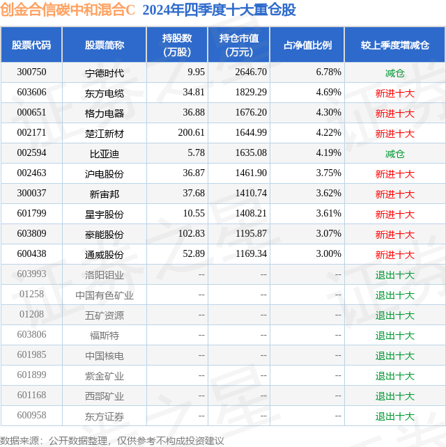 证券之星消息,日前创金合信碳中和混合C基金公布四季报,2024年四季度最新规模1.62亿元,季度净值涨幅为-10.65%。