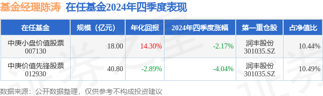 证券之星消息,日前中庚价值先锋股票基金公布四季报,2024年四季度最新规模40.8亿元,季度净值涨幅为-4.04%。