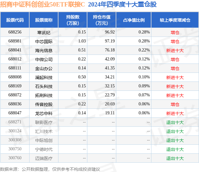 证券之星消息,日前招商中证科创创业50ETF联接C基金公布四季报,2024年四季度最新规模1.86亿元,季度净值涨幅为6.33%。