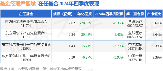证券之星消息,日前东方阿尔法产业先锋混合C基金公布四季报,2024年四季度最新规模2.24亿元,季度净值涨幅为-8.46%。
