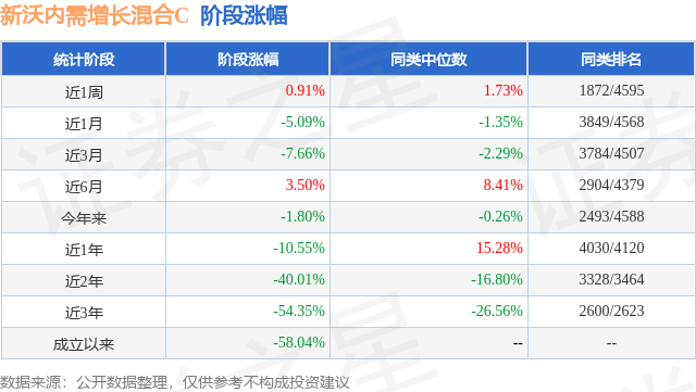 从业绩表现来看,新沃内需增长混合C基金过去一年净值涨幅为-10.55%,在同类基金中排名4030/4120,同类基金过去一年净值涨幅中位数为15.28%。而基金过去一年的最大回撤为-27.93%,成立以来的最大回撤为-64.21%。