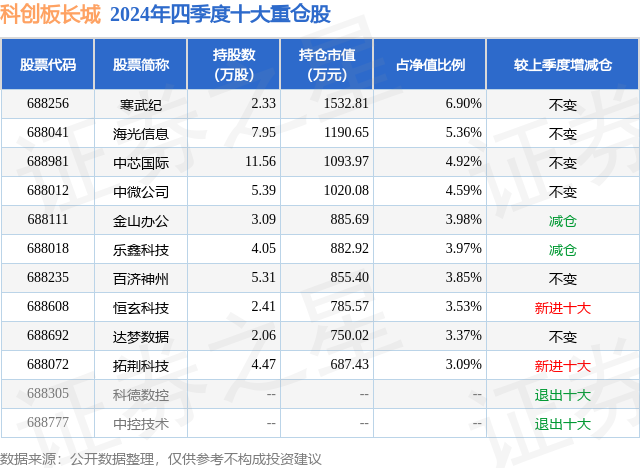 证券之星消息,日前科创板长城基金公布四季报,2024年四季度最新规模2.15亿元,季度净值涨幅为15.58%。