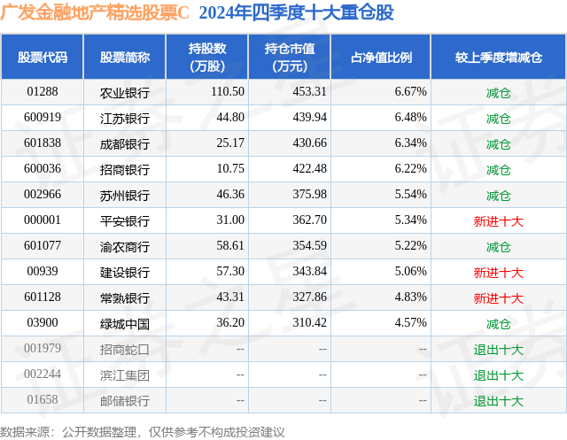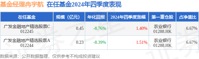 证券之星消息,日前广发金融地产精选股票C基金公布四季报,2024年四季度最新规模0.45亿元,季度净值涨幅为1.4%。