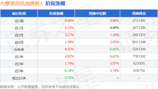从业绩表现来看,大摩灵动优选债券A基金过去一年净值涨幅为4.92%,在同类基金中排名778/1102,同类基金过去一年净值涨幅中位数为6.62%。而基金过去一年的最大回撤为-3.42%,成立以来的最大回撤为-14.41%。