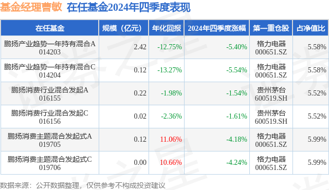 证券之星消息,日前鹏扬产业趋势一年持有混合C基金公布四季报,2024年四季度最新规模0.12亿元,季度净值涨幅为-5.54%。