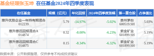 证券之星消息,日前惠升惠远回报混合C基金公布四季报,2024年四季度最新规模0.15亿元,季度净值涨幅为-6.32%。