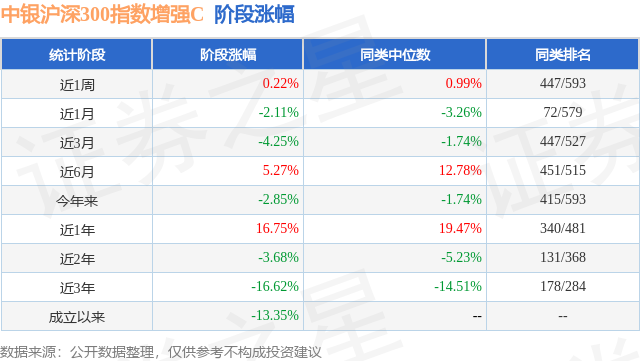 从业绩表现来看,中银沪深300指数增强C基金过去一年净值涨幅为16.75%,在同类基金中排名340/481,同类基金过去一年净值涨幅中位数为19.47%。而基金过去一年的最大回撤为-12.17%,成立以来的最大回撤为-38.05%。