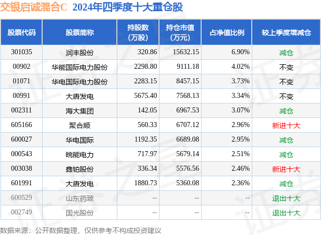 证券之星消息,日前交银启诚混合C基金公布四季报,2024年四季度最新规模4.71亿元,季度净值涨幅为-5.72%。