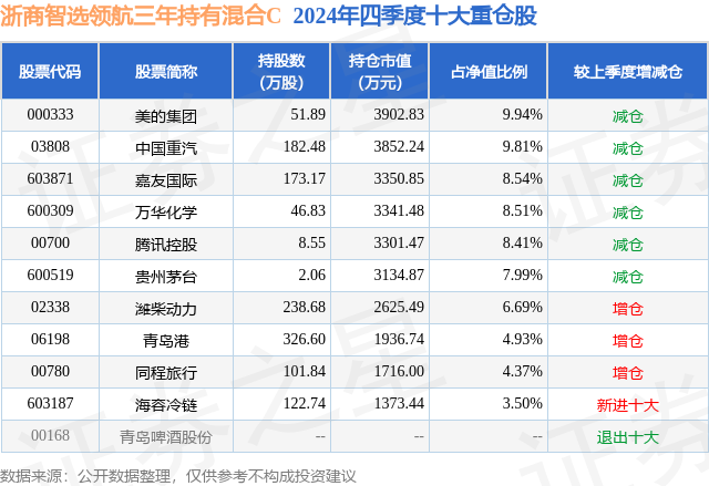 对本季度基金运作,基金经理的观点如下:我们采用自下而上的选股方式构建组合,对优质公司搭建资产定价模型,选择隐含收益率较高的个股。股票组合体现了在管基金经理的研究思考和研究团队的共同智慧。组合不偏向特定的行业,运作相对均衡。我们期望以合理安全边际买入、较高集中度持仓、较低换手率实现收益目标。对于涨幅远超内在价值的股票,我们会遵守纪律减仓。 u3000u3000本季度,我们维持股票高仓位运作,因为我们判断持仓公司的隐含收益率仍可期待。报告期末,我们前十大重仓占股票持仓的比例约80%,体现出我们价值投资、集中持仓的风格。整体来说我们对港股更有信心,因为可选出一批估值更低、成长性亦可观的可投公司,所以我们港股持仓比例较高。 u3000u3000本季度,股票前十位重仓公司没有变化。我们的交易主要基于我们对公司内在价值的判断,我们基于绝对定价做有纪律的买卖。我们主要的精力投入在公司护城河、资本配置、内在价值的研究上,并相信公司的价值创造是股东回报的本源。随着时间跨越到2025年,我们持仓公司的内在价值有望实现内生式增长,因此隐含收益率进一步提升。 u3000u3000经济层面,中短期来看,以旧换新等系列刺激政策对提升居民购买力有所裨益,但我们相信关键点仍在收入预期和家庭资产负债表的修复。尽管内需面临压力,但我们相信危中有机,房地产下行带动的户籍制度松绑极大地消除了生产要素流动的障碍,为中长期的经济增长打开空间。外销方面,我们欣喜地看到中国公司在更多的海外国家和领域获取市场份额和影响力,我们对这些全球公司的长期增长充满期待。 u3000u3000截止2024年底,我已独立管理智选领航约一年半的时间,感谢投资人持久的坚持,希望能通过价值投资的实践来达成投资人和管理人的相互成就。