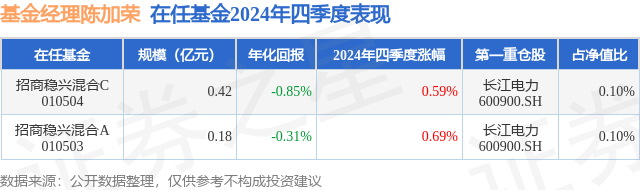 证券之星消息,日前招商稳兴混合C基金公布四季报,2024年四季度最新规模0.42亿元,季度净值涨幅为0.59%。