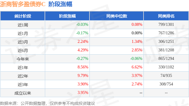 从业绩表现来看,浙商智多盈债券C基金过去一年净值涨幅为8.56%,在同类基金中排名330/1102,同类基金过去一年净值涨幅中位数为6.62%。而基金过去一年的最大回撤为-1.1%,成立以来的最大回撤为-7.21%。
