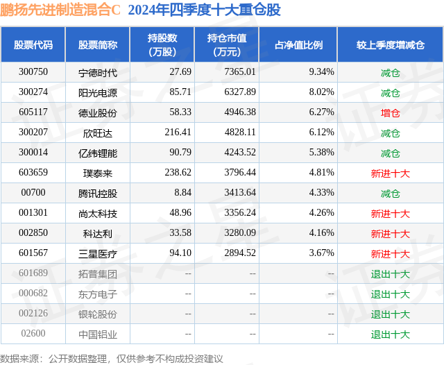 证券之星消息,日前鹏扬先进制造混合C基金公布四季报,2024年四季度最新规模3.53亿元,季度净值涨幅为-7.09%。