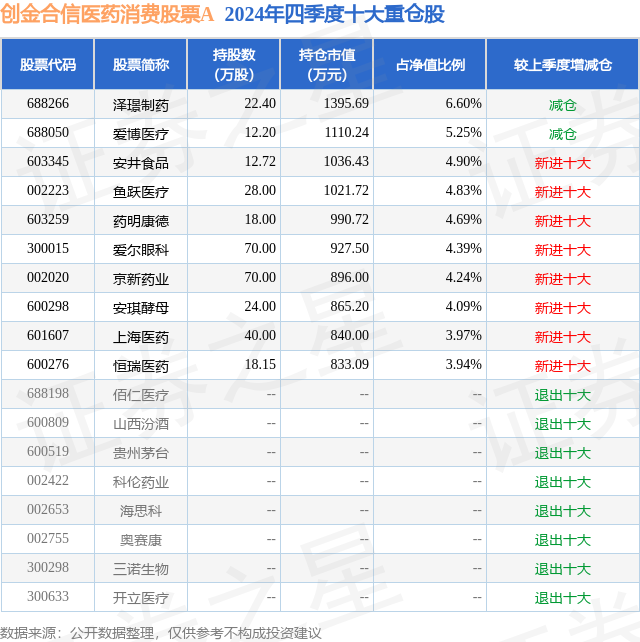 证券之星消息,日前创金合信医药消费股票A基金公布四季报,2024年四季度最新规模1.84亿元,季度净值涨幅为-8.78%。