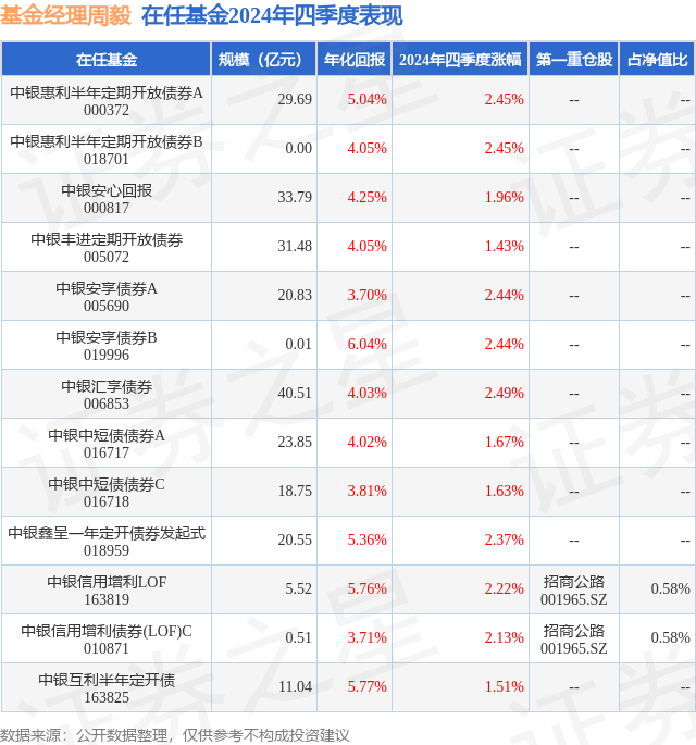 证券之星消息,日前中银信用增利债券(LOF)C基金公布四季报,2024年四季度最新规模0.51亿元,季度净值涨幅为2.13%。