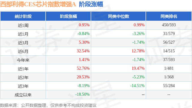 从业绩表现来看,西部利得CES芯片指数增强A基金过去一年净值涨幅为52.76%,在同类基金中排名1/481,同类基金过去一年净值涨幅中位数为19.47%。而基金过去一年的最大回撤为-19.89%,成立以来的最大回撤为-54.41%。