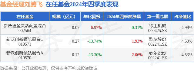 证券之星消息,日前新沃创新领航混合C基金公布四季报,2024年四季度最新规模0.27亿元,季度净值涨幅为1.93%。
