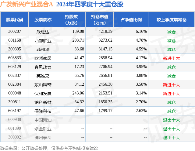 证券之星消息,日前广发新兴产业混合A基金公布四季报,2024年四季度最新规模6.51亿元,季度净值涨幅为-4.16%。