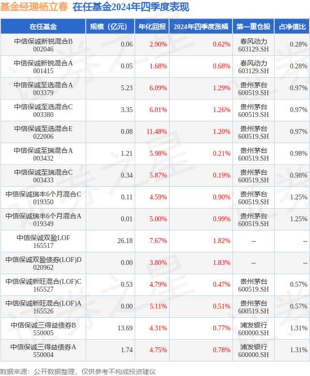 证券之星消息,日前中信保诚新旺混合(LOF)C基金公布四季报,2024年四季度最新规模0.53亿元,季度净值涨幅为0.47%。