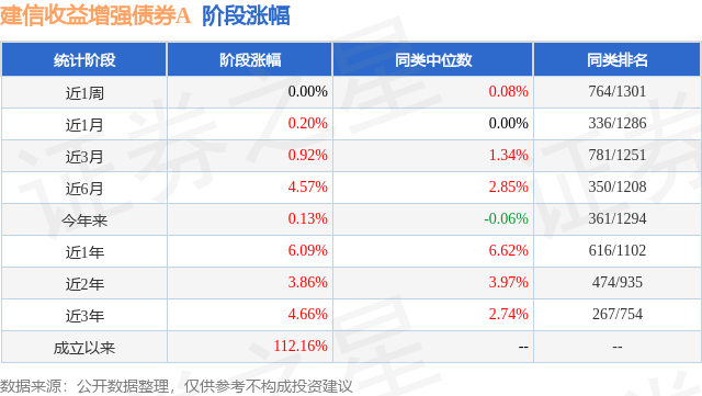 从业绩表现来看,建信收益增强债券A基金过去一年净值涨幅为6.09%,在同类基金中排名616/1102,同类基金过去一年净值涨幅中位数为6.62%。而基金过去一年的最大回撤为-0.92%,成立以来的最大回撤为-9.02%。