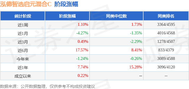 从业绩表现来看,泓德智选启元混合C基金过去一年净值涨幅为7.74%,在同类基金中排名3096/4120,同类基金过去一年净值涨幅中位数为15.28%。而基金过去一年的最大回撤为-17.09%,成立以来的最大回撤为-22.88%。