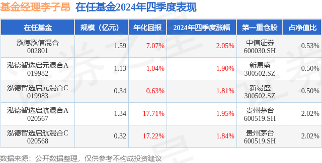 证券之星消息,日前泓德智选启元混合C基金公布四季报,2024年四季度最新规模0.34亿元,季度净值涨幅为1.81%。