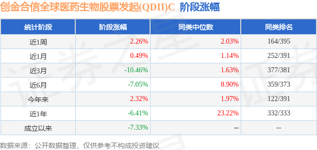 从业绩表现来看,创金合信全球医药生物股票发起(QDII)C基金过去一年净值涨幅为-6.41%,在同类基金中排名332/333,同类基金过去一年净值涨幅中位数为23.22%。而基金过去一年的最大回撤为-14.93%,成立以来的最大回撤为-14.93%。