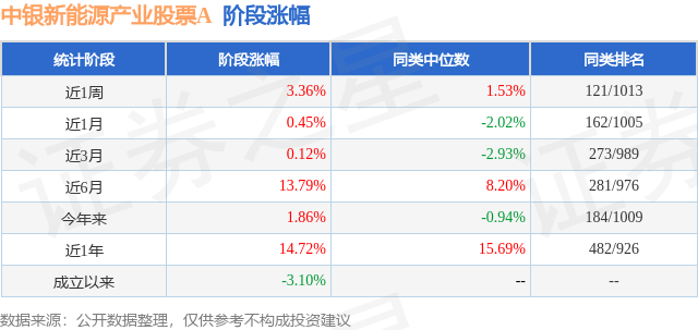 从业绩表现来看,中银新能源产业股票A基金过去一年净值涨幅为14.72%,在同类基金中排名482/926,同类基金过去一年净值涨幅中位数为15.69%。而基金过去一年的最大回撤为-16.09%,成立以来的最大回撤为-24.96%。