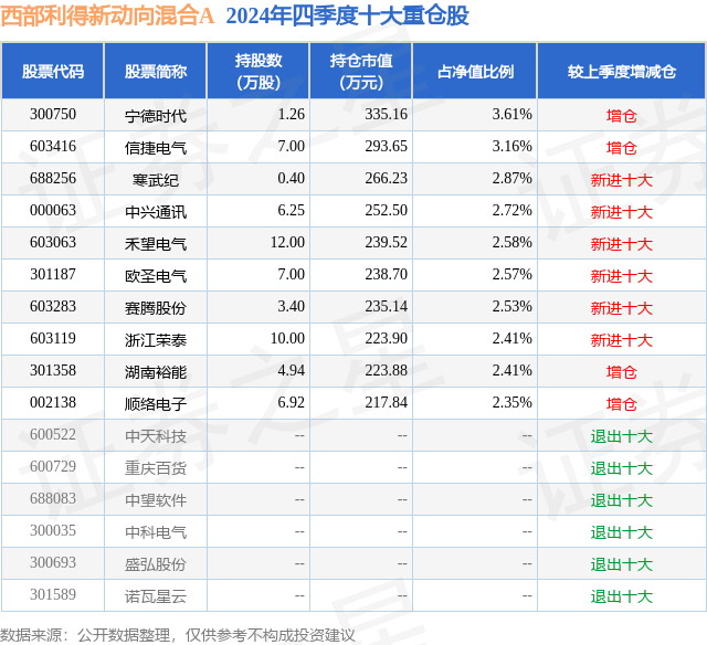 证券之星消息,日前西部利得新动向混合A基金公布四季报,2024年四季度最新规模0.68亿元,季度净值涨幅为9.93%。